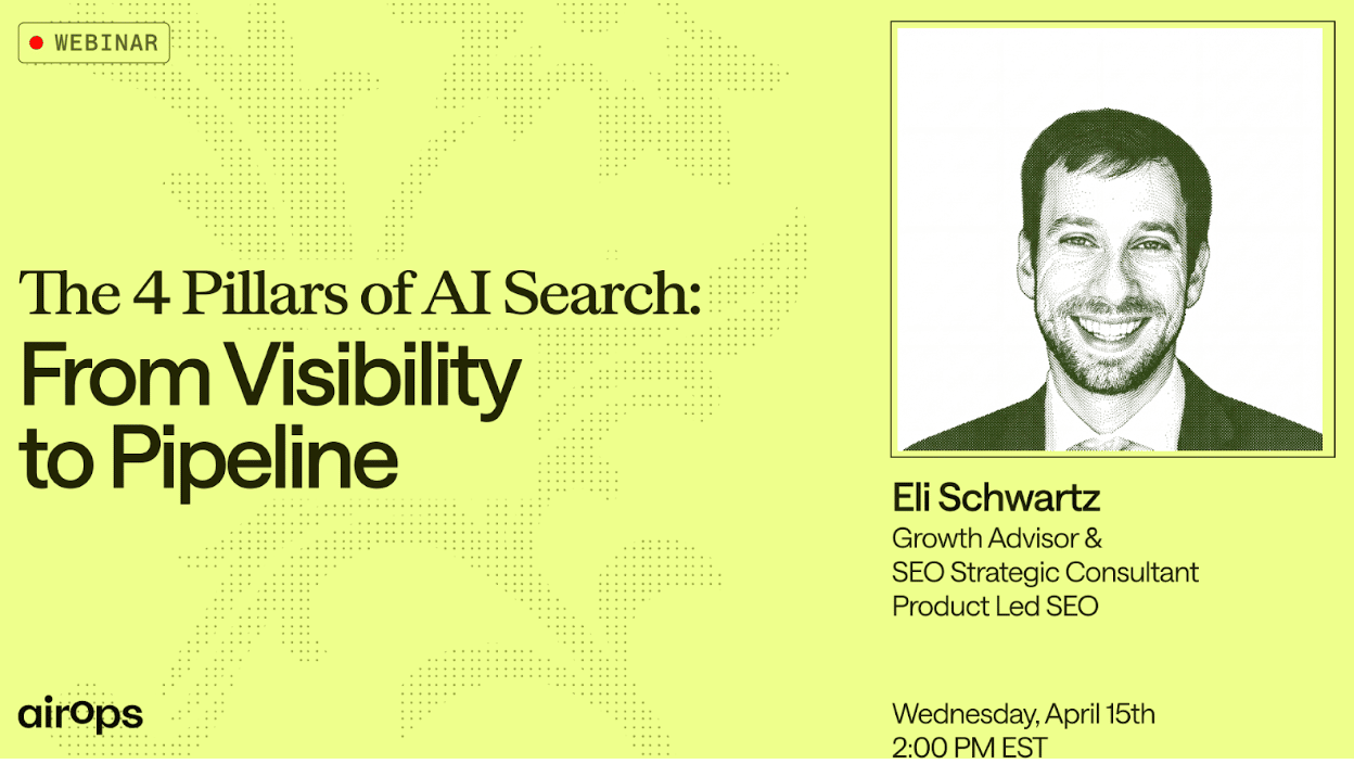Last week, I ran a quick experiment. I pulled the top 20 traffic-driving pages from a client's blog. Every single one ranked on page one for its target keyword, had solid click-through rates, and good engagement metrics. By every traditional SEO measure, these pages were performing well. Then I tested how often those same pages were cited in AI-generated answers across ChatGPT, Perplexity, and Google's AI Overviews. The results were not great. A handful showed up occasionally, but most didn't appear at all. A few of the highest-traffic pages were completely invisible inside the realm of AI search, even when the query matched the page almost perfectly. This is the gap most content teams don't know they have, and it's getting more expensive to ignore. This week's newsletter is brought to you by AirOps. Your content might be good. But is it getting retrieved? AI search doesn't work like traditional rankings. When someone asks ChatGPT or Perplexity a question, the model runs dozens of searches behind the scenes, evaluates passage-level relevance, and assembles an answer from the sources it trusts most. If your content isn't structured for that process, it doesn't get cited. Period. Eli Schwartz (Growth Advisor, Author of Product-Led SEO) is joining AirOps on April 15th to break down the 4 pillars of what it takes to succeed in AI search right now, and how to turn visibility into real pipeline impact. 📅 April 15, 2026 · 2:00 PM EST · Live on Zoom (recording available!) Sign up here. Why should you care about showing up in AI search results?First of all, the elephant in the room: Yes, it’s still *early* to be thinking about AI search. I get that. However, the early bird advantage is very real, and the content teams working to solve for this now are getting ahead of the game. Here’s what the data says about AI search: