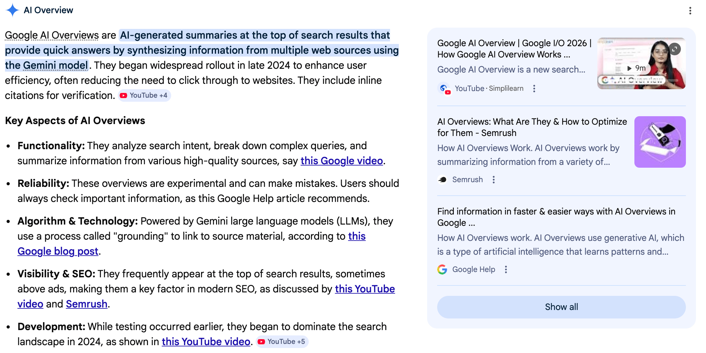 What this looks like in practiceI love this advice from Leigh McKenzie, Head of SEO & AI Search at Semrush: “Google your core topics and actually look at the SERP. What's in the AI Overview? What sources is it pulling from? Brand sites, niche publishers, Reddit, YouTube? Then build a content strategy that goes deep on those topics and shows up across those channels. The companies winning in AI Overviews aren't doing one clever thing. They're impossible to ignore because they're everywhere that matters.” The fix isn't to just write more blog posts. It's to build the kind of deep, differentiated coverage that signals genuine expertise: a point-of-view-driven comparison page, original survey data from your customers, case studies with real numbers, participation in off-site forums, and a connected cluster of content that covers the topic from every meaningful angle. Six months of building that, and you're the source AI keeps returning to. Why? Because you've done the work to deserve it. A note on AI-assisted content AI-assisted content can absolutely appear in AI Overviews, but only if it clears a quality threshold. The key is to use AI as a starting point, not a final product. Verify all claims, edit for voice consistency, and add original value on top of the draft (e.g., personal experience, expert insights, proprietary examples). ​Seer Interactive research notes that they can't definitively prove that citations cause higher CTRs, by the way. It's equally possible that brands with stronger authority are simply more likely to be cited. What they can say with confidence is that queries where you're cited consistently outperform those where you're not, regardless of the causal direction. ​ Purely AI-generated content is unlikely to perform well here because it lacks the originality and E-E-A-T signals these systems are built to look for. Think long-term about how you’ll tackle surfacing in AI overviewsOptimizing for AI Overviews is an ongoing process, not a one-time project. I'll be honest: this stuff is still evolving, and anyone who tells you they have it completely figured out is selling something. What I do know is that the teams sitting on the sidelines waiting for more certainty are already behind. Pick one section of your content, apply the tactics above, and see what moves. That's how you learn what works...and right now, that's the whole game. 'Til next time (see you on LinkedIn), |